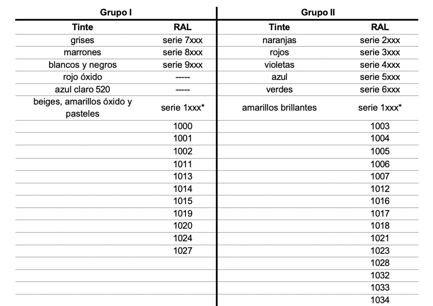 9. COLORACIÓN RAL DE LOS PRODUCTOS MPM