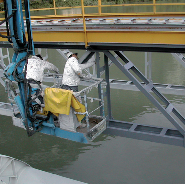 Manutenzione e protezione delle strutture in acciaio carbonioso e zincato in ambiente industriale e marino.