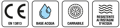 Rivestimento monocomponente per esterni resistente ai carburanti ed agli oli minerali a base di copolimeri acrilici in dispersione acquosa.