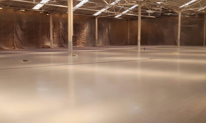 In una prima fase è stato necessario effettuare una preparazione meccanica tramite levigatura del nuovo pavimento industriale, per garantire l’adesione del rivestimento resinoso.